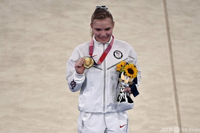 米国の21歳ジェイド・キャリー(Jade Carey)が14.366点をマークし、金メダルを獲得。前日の跳馬では悔しい結果に終わっていたが、そこから立て直して優雅な演技を披露した。