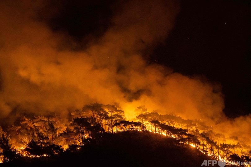 山火事はリゾートで知られる地中海とエーゲ海(Aegean Sea)の沿岸部各地で相次ぎ発生した。手付かずの森が広範囲にわたって焼失し、観光客はホテルからの避難を余儀なくされた。