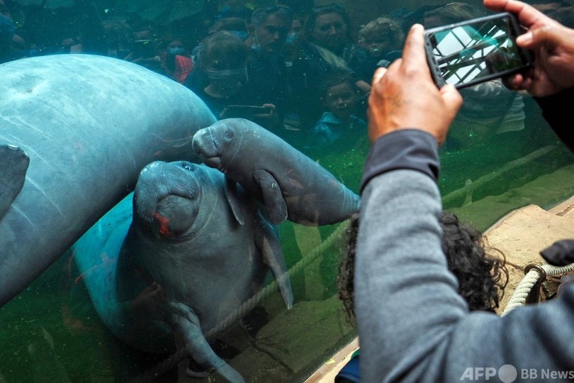 【今日の1枚】「はい、ポーズ」 マナティーの親子 仏動物園