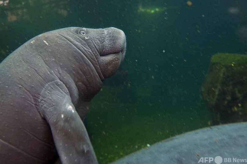 【今日の1枚】「はい、ポーズ」 マナティーの親子 仏動物園