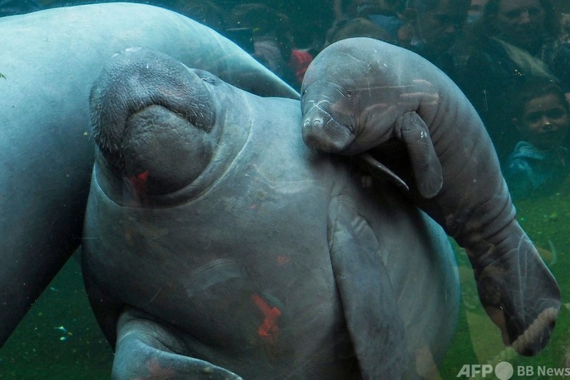 【今日の1枚】「はい、ポーズ」 マナティーの親子 仏動物園