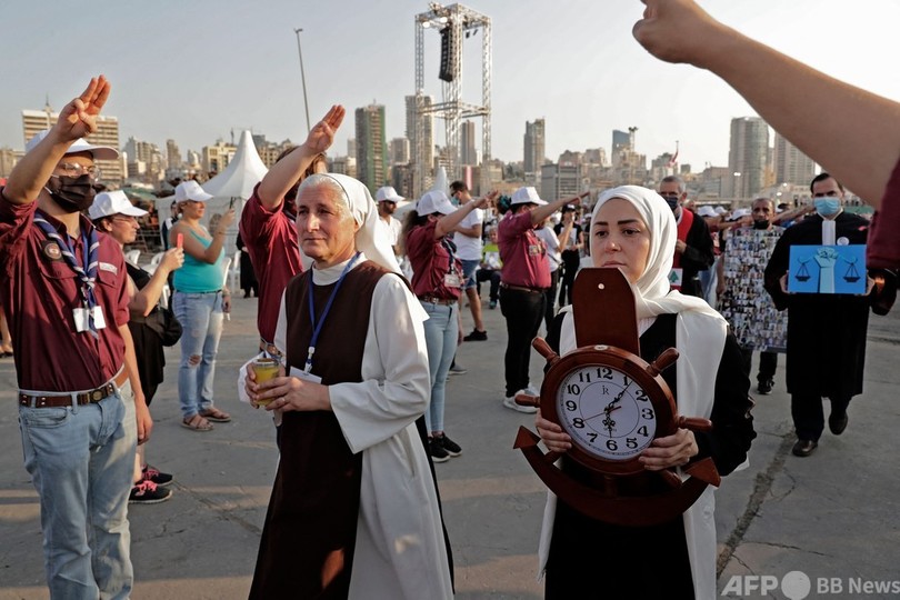 【8月5日 AFP】レバノンの首都ベイルートの港湾地区で大規模爆発が発生して1年となる4日、平時に起きた災害としては最多の死者が出た爆発への責任追及を求める抗議デモが市内で行われ、数千人が参加した。