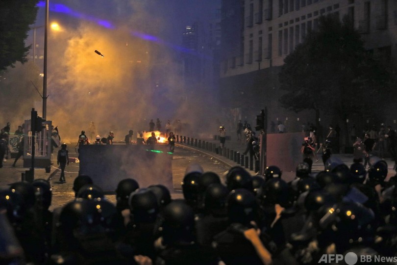 機動隊は、石や爆竹、火炎瓶を投げたデモ隊に催涙ガス、放水銃、ゴム弾を使用。レバノンの赤十字(Red Cross)によると、50人以上が負傷した。