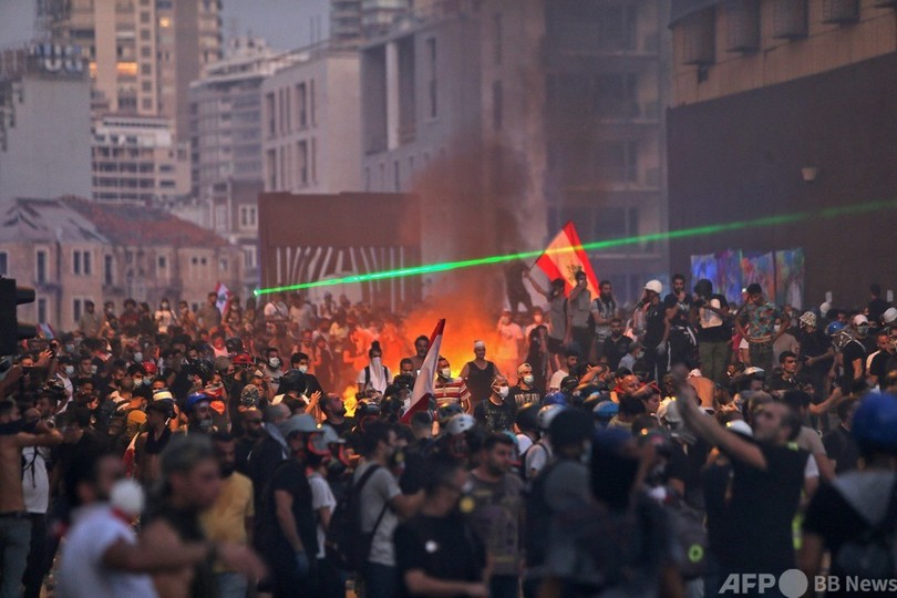 レバノン大爆発から1年、責任追及求める抗議デモに数千人