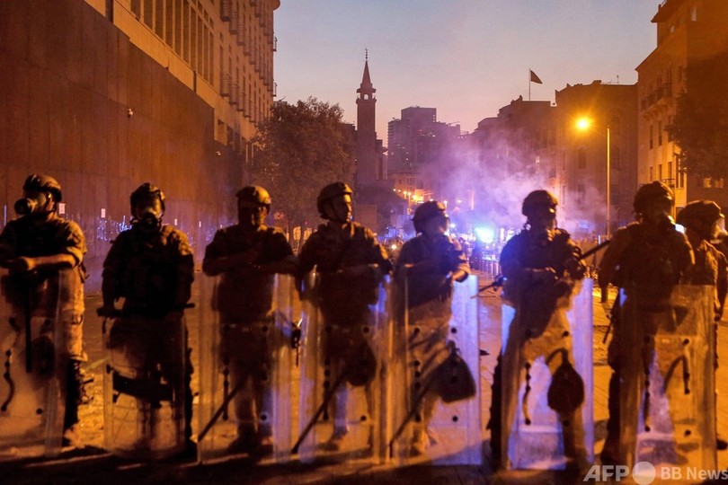 機動隊は、石や爆竹、火炎瓶を投げたデモ隊に催涙ガス、放水銃、ゴム弾を使用。レバノンの赤十字(Red Cross)によると、50人以上が負傷した。