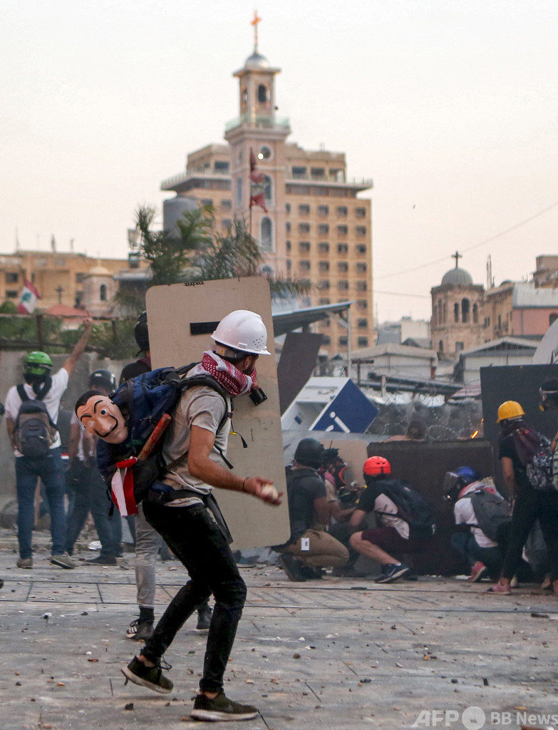 機動隊は、石や爆竹、火炎瓶を投げたデモ隊に催涙ガス、放水銃、ゴム弾を使用。レバノンの赤十字(Red Cross)によると、50人以上が負傷した。