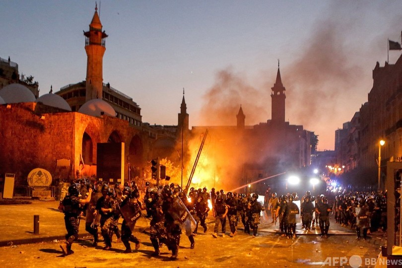機動隊は、石や爆竹、火炎瓶を投げたデモ隊に催涙ガス、放水銃、ゴム弾を使用。レバノンの赤十字(Red Cross)によると、50人以上が負傷した。