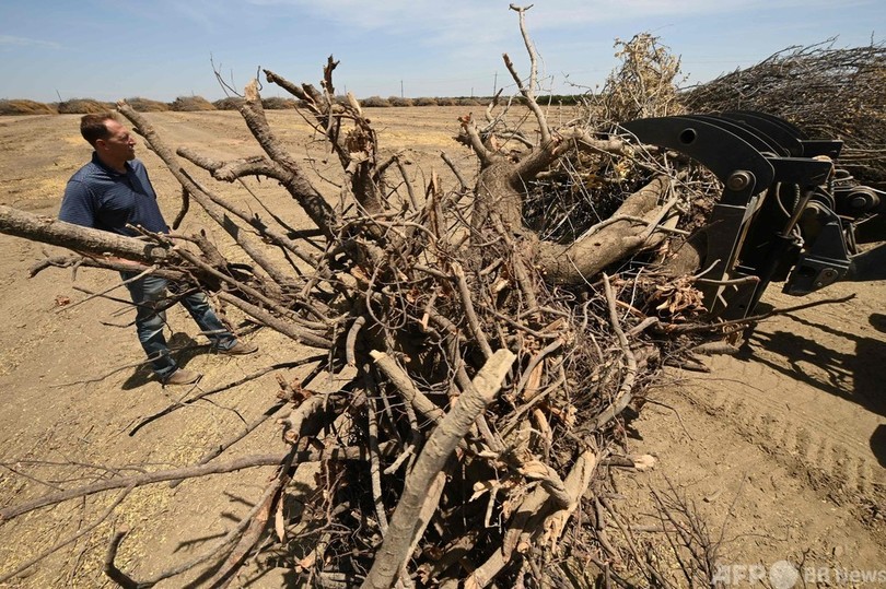 米カリフォルニア州のアーモンド農園、干ばつと給水制限で収穫前に根こそぎ廃棄