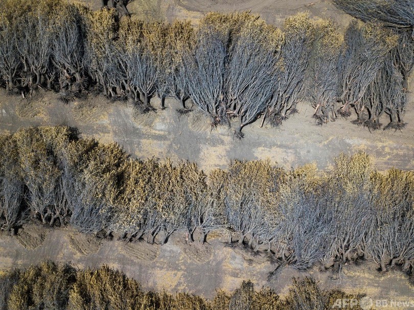 米カリフォルニア州のアーモンド農園、干ばつと給水制限で収穫前に根こそぎ廃棄