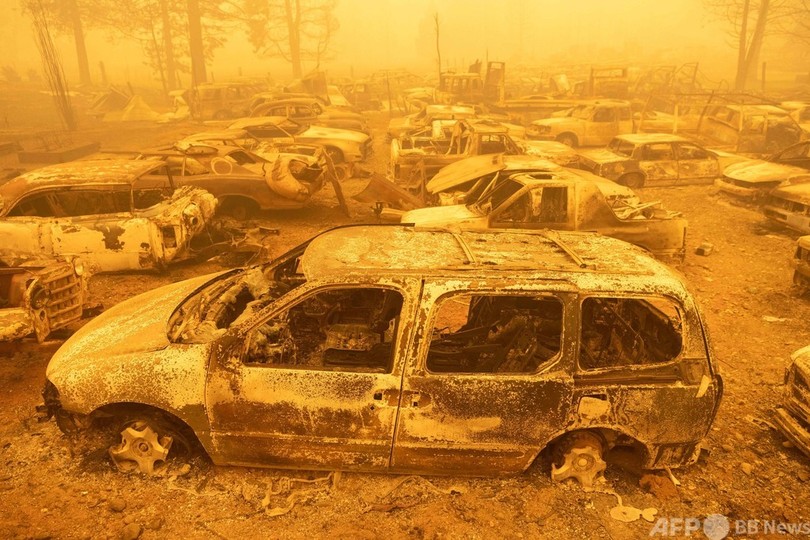 ディキシー・ファイアによる焼失面積は6日までに1700平方キロ以上に及び、火災の規模は同州史上3番目となった。火災による大量の煙は宇宙からも観測できる。