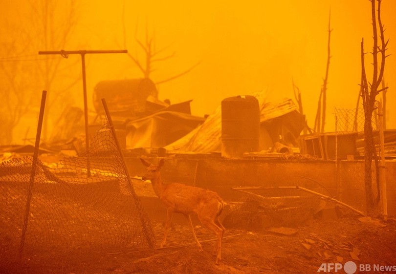 ディキシー・ファイアによる焼失面積は6日までに1700平方キロ以上に及び、火災の規模は同州史上3番目となった。火災による大量の煙は宇宙からも観測できる。
