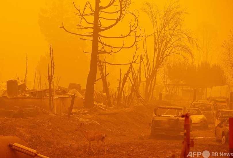 ディキシー・ファイアによる焼失面積は6日までに1700平方キロ以上に及び、火災の規模は同州史上3番目となった。火災による大量の煙は宇宙からも観測できる。