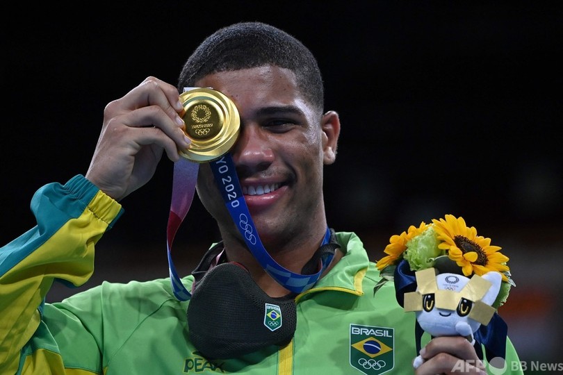 【8月7日 AFP】東京五輪は7日、ボクシング男子ミドル級決勝が行われ、ブラジルのエベルト・ソウザ(Hebert Sousa)はウクライナの第1シード、オレクサンドル・ヒズニャク(Oleksandr Khyzhniak)に衝撃の3回KO勝ちで金メダルを獲得。KOは「ラッキーだった」と振り返った。
