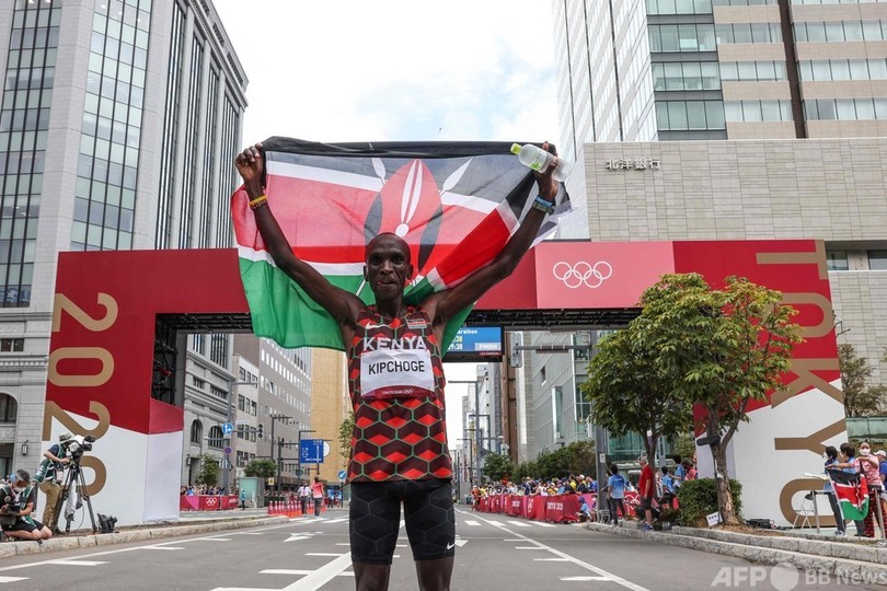 【8月8日 AFP】東京五輪は8日、陸上男子マラソンが行われ、ケニアのエリウド・キプチョゲ(Eliud Kipchoge)が2時間8分38秒の独走で金メダルを獲得し、五輪連覇を達成した。