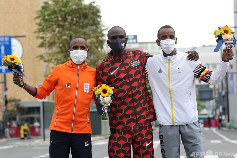 【8月8日 AFP】東京五輪は8日、陸上男子マラソンが行われ、ケニアのエリウド・キプチョゲ(Eliud Kipchoge)が2時間8分38秒の独走で金メダルを獲得し、五輪連覇を達成した。