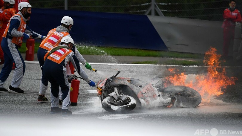 スティリアGPが中断、クラッシュでマシン炎上 MotoGPクラス