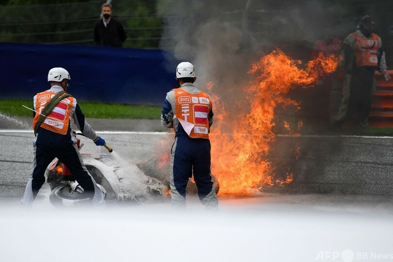 マシンから漏れた燃料が散乱したため、コースには消火剤がまかれたが、その後は清掃が行われてレース再開の運びとなった。