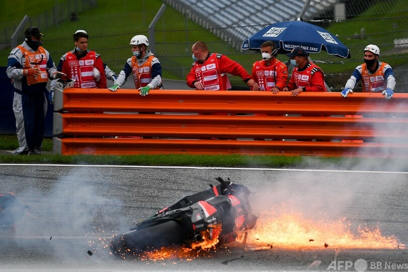 スティリアGPが中断、クラッシュでマシン炎上 MotoGPクラス