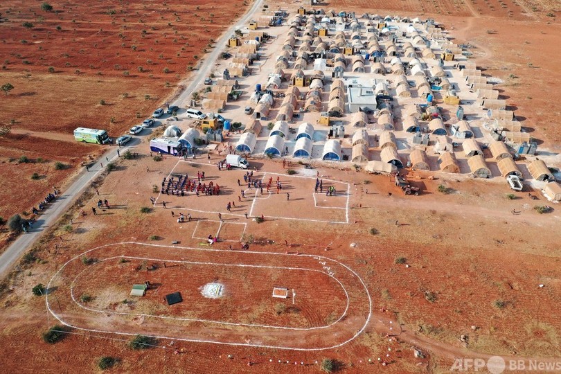 イドリブ県の住民約300万人のうち3分の2が、10年に及ぶ紛争の中、国内の別の場所から避難して来た。家を失った人の多くは、町の中に点在するキャンプでの生活を余儀なくされている。(c)AFP