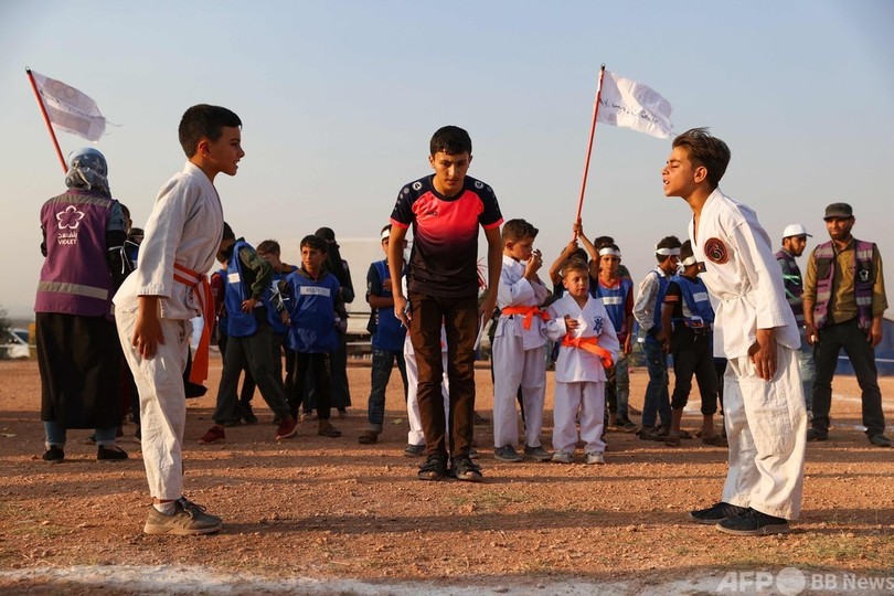 【8月9日 AFP】シリアの反体制派最後の拠点、北西部イドリブ(Idlib)県にある町フア(Fuaa)で7日、避難民の少年らが独自の「五輪競技会」に参加した。