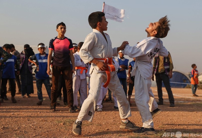 【8月9日 AFP】シリアの反体制派最後の拠点、北西部イドリブ(Idlib)県にある町フア(Fuaa)で7日、避難民の少年らが独自の「五輪競技会」に参加した。