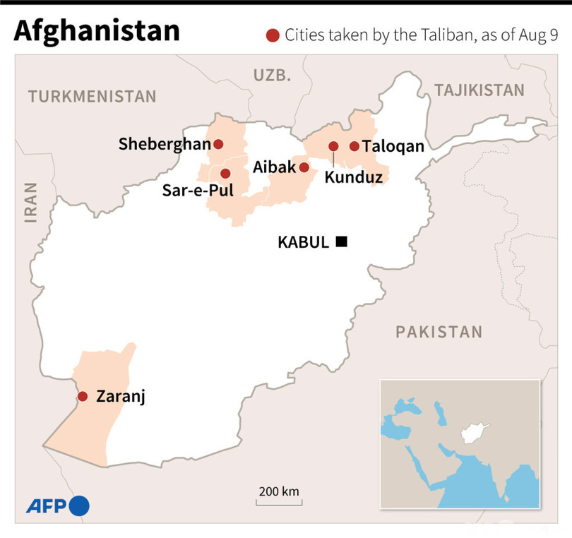 タリバンは先週末、南西部ニムルズ(Nimroz)州の州都ザランジ(Zaranj)を掌握。その後、シェベルガン(Sheberghan)、クンドゥズ(Kunduz)、サリプル(Sar-e-Pul)、タロカーン(Taloqan)の北部4州都を次々と制圧した。
