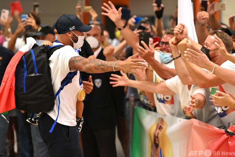 【8月10日 AFP】東京五輪に出場したイタリア代表選手団が9日に帰国し、陸上男子100メートルで驚きの金メダル獲得を果たすなど、母国が夏季五輪で過去最高の成績を収める立役者となったラモントマルチェル・ヤコブス(Lamont Marcell Jacobs)が熱烈な歓迎を受けた。