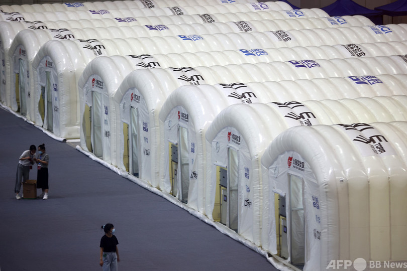 実験室は面積が8000平方メートルに及び、ハード型エアドームテント12基とソフト型15基が設置されている。会場には全自動分別処理システムや自動核酸抽出装置を備えており、検査効率の向上と検査スタッフの感染リスク低減を同時に図る。10人分の検体をプール検査する方式を採用すると、1日あたりのPCR検査能力は最大200万人分に達する。(c)CNS/JCM/AFPBB News