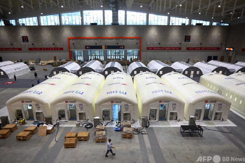 実験室は面積が8000平方メートルに及び、ハード型エアドームテント12基とソフト型15基が設置されている。会場には全自動分別処理システムや自動核酸抽出装置を備えており、検査効率の向上と検査スタッフの感染リスク低減を同時に図る。10人分の検体をプール検査する方式を採用すると、1日あたりのPCR検査能力は最大200万人分に達する。(c)CNS/JCM/AFPBB News