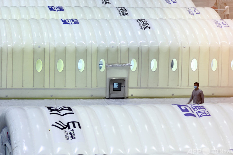 実験室は面積が8000平方メートルに及び、ハード型エアドームテント12基とソフト型15基が設置されている。会場には全自動分別処理システムや自動核酸抽出装置を備えており、検査効率の向上と検査スタッフの感染リスク低減を同時に図る。10人分の検体をプール検査する方式を採用すると、1日あたりのPCR検査能力は最大200万人分に達する。(c)CNS/JCM/AFPBB News