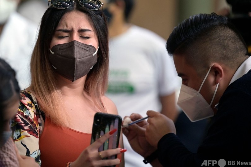【8月11日 AFP】新型コロナウイルスの流行第3波に見舞われているメキシコの首都メキシコ市で10日、ワクチン接種会場にパンダの「パンデミオ(Pandemio)」の着ぐるみを着た地元政府職員が登場し、英アストラゼネカ(AstraZeneca)製ワクチンの1回目の接種を終えた人たちをエクササイズで楽しませた。(c)AFP