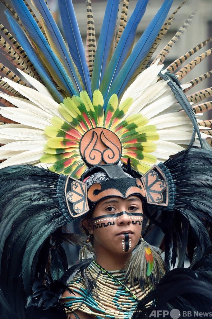 アステカ帝国の中心地だったメキシコ市のソカロ(Zocalo)広場で開かれた式典には、メキシコ、カナダ、米国の先住民の代表者と、アステカ帝国の皇帝モクテスマ2世(Moctezuma II)の子孫も出席した。