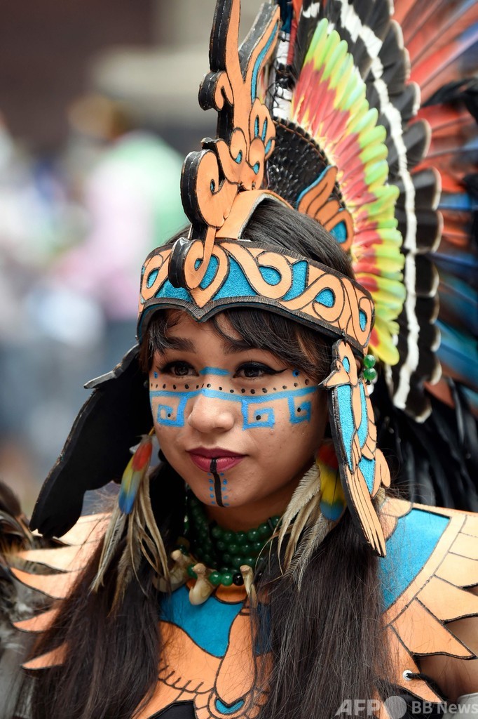 アステカ帝国の中心地だったメキシコ市のソカロ(Zocalo)広場で開かれた式典には、メキシコ、カナダ、米国の先住民の代表者と、アステカ帝国の皇帝モクテスマ2世(Moctezuma II)の子孫も出席した。