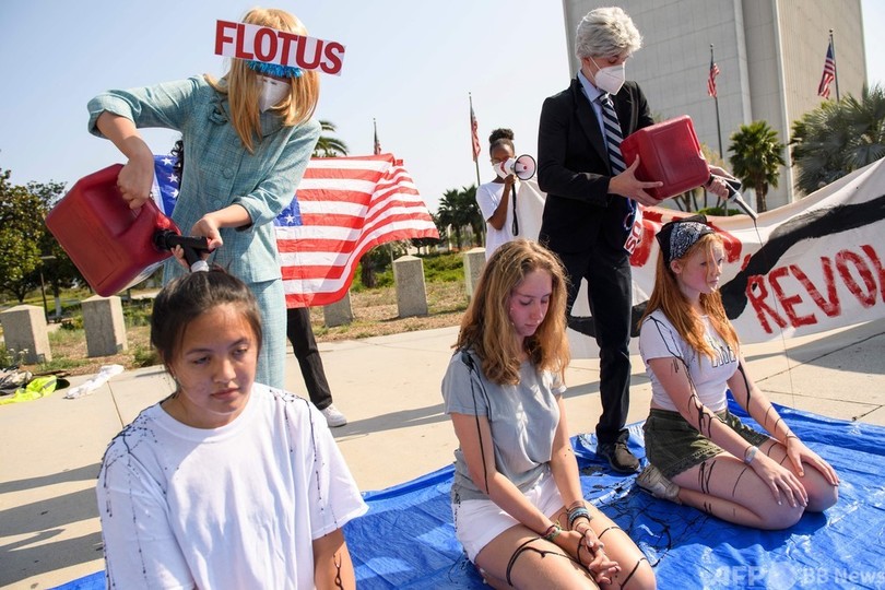 バイデン夫妻に扮して気候変動とパイプライン計画に抗議、米LA