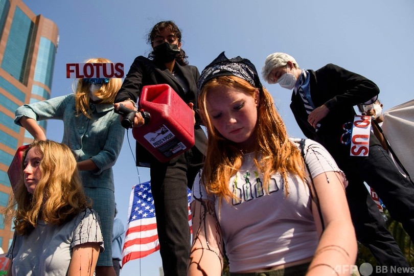 バイデン夫妻に扮して気候変動とパイプライン計画に抗議、米LA