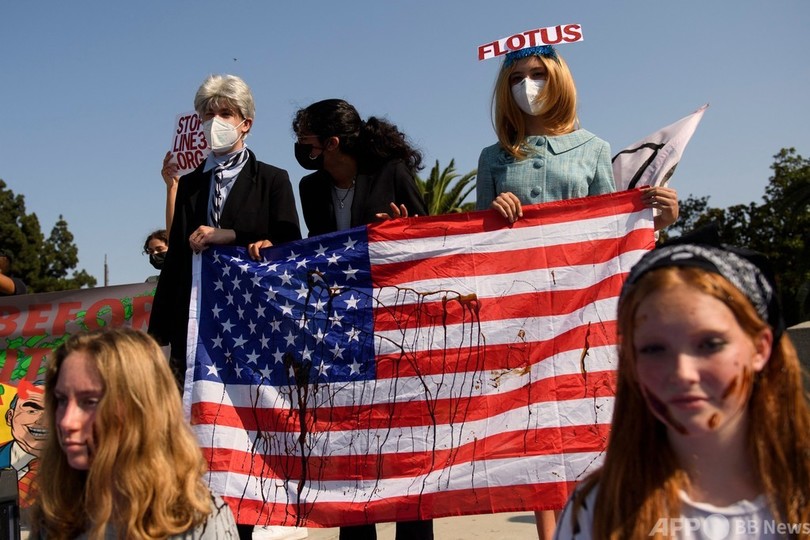 バイデン夫妻に扮して気候変動とパイプライン計画に抗議、米LA