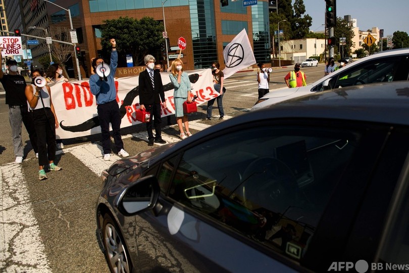 バイデン夫妻に扮して気候変動とパイプライン計画に抗議、米LA