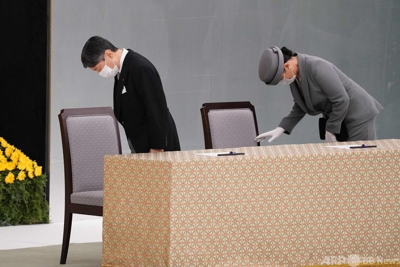 ニュース 政治・経済 終戦から76年、全国戦没者追悼式 2021年8月15日 15:56 発信地:東京 [ 日本 アジア・オセアニア ] このニュースをシェア ‹ › ❮ 11/12 ❯ 全国戦没者追悼式で一礼される天皇、皇后両陛下。東京都千代田区の日本武道館で(2021年8月15日撮影)。(c)TORU HANAI / POOL / AFP 画像作成中 ! 【8月15日 AFP】終戦から76年を迎えた15日、東京都千代田区の日本武道館で全国戦没者追悼式が開かれた。天皇陛下はお言葉で、昨年に続き「深い反省」との表現で追悼の意を表した。(c)AFP 政治・経済 一覧へ> メディア・報道関係・法人の方向け 写真・動画 購入のお問合せ>