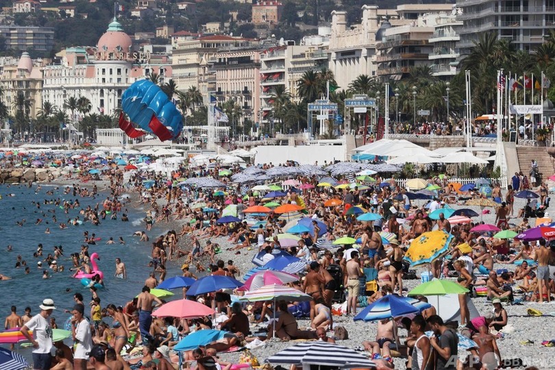 夏を満喫 仏ニースのビーチににぎわい