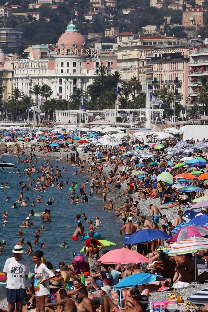 夏を満喫 仏ニースのビーチににぎわい