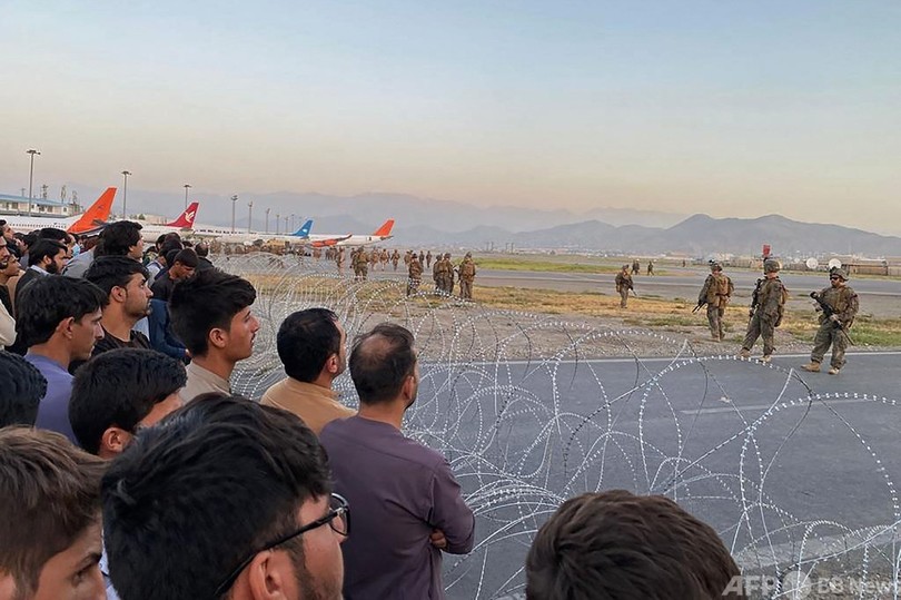 【8月16日 AFP】(更新)アフガニスタンの旧支配勢力タリバン(Taliban)に掌握された首都カブールで16日、国外に脱出しようと大勢が空港に殺到して混乱が生じたため、カブール発の民間航空便が運休となった。混乱を収拾しようと、米軍が空に向かって威嚇射撃をする場面もあった。