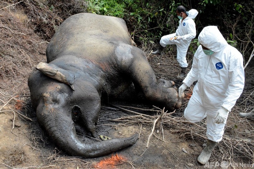 【8月17日 AFP】インドネシア当局は17日、絶滅が危惧されるスマトラゾウ1頭の頭部が切断された状態で見つかった問題をめぐり、密猟容疑で5人を逮捕したと発表した。