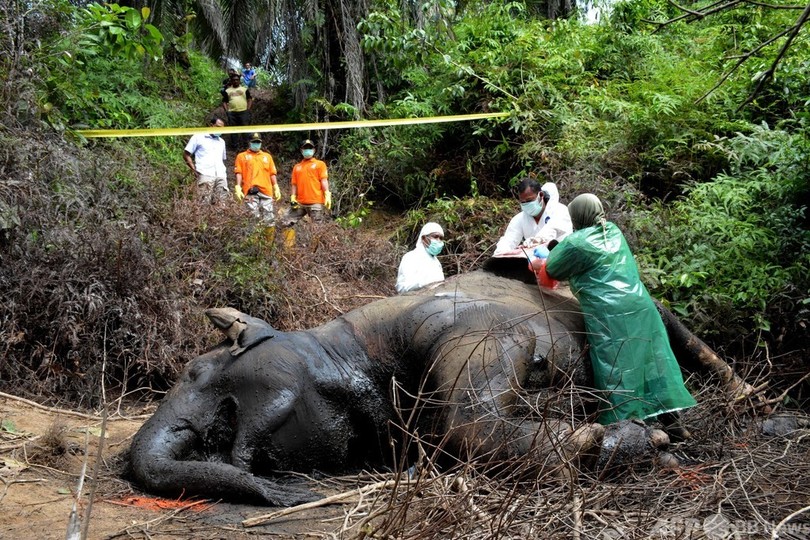 先月、スマトラ(Sumatra)島の先端に位置するアチェ(Aceh)州のパーム油農園で、腐敗が進み、頭部と牙がない状態の雄のゾウの死骸が発見されていた。解剖の結果、毒を盛られていたことも分かった。