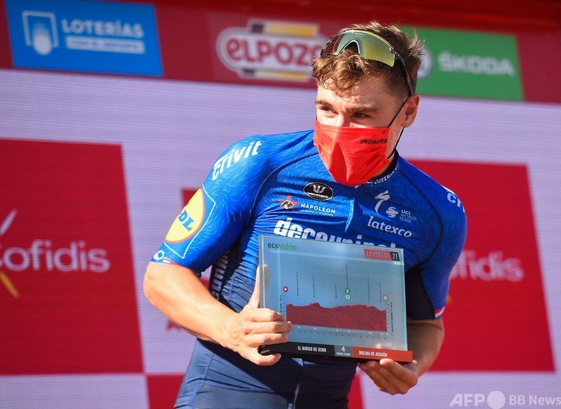 【8月18日 AFP】ブエルタ・ア・エスパーニャ(Vuelta a Espana 2021)は17日、第4ステージ(エルブルゴデオスマからモリナデアラゴン、163.9キロ)が行われ、昨年クラッシュに見舞われて大けがをしたドゥクーニンク・クイックステップ(Deceuninck Quick Step)のファビオ・ヤコブセン(Fabio Jakobsen、オランダ)が復活のステージ優勝を飾った。