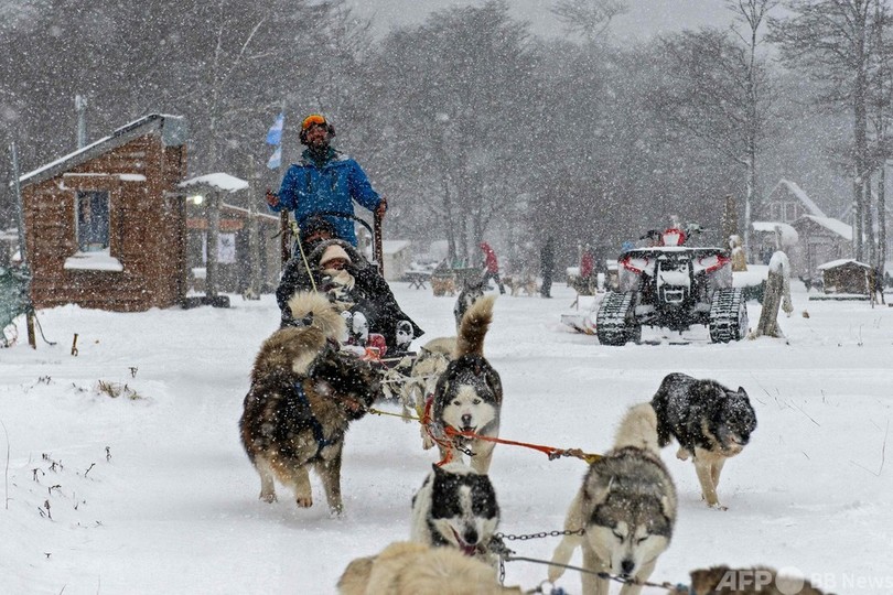 【8月30日 AFP】アルゼンチン南部ウスアイア(Ushuaia)の近郊にある観光施設「シベリアノデフエゴ(Siberianos de Fuego)」で、犬ぞりを楽しむ観光客ら。ウスアイアは南米大陸南端のティエラデルフエゴ(Tierra del Fuego)諸島にある。