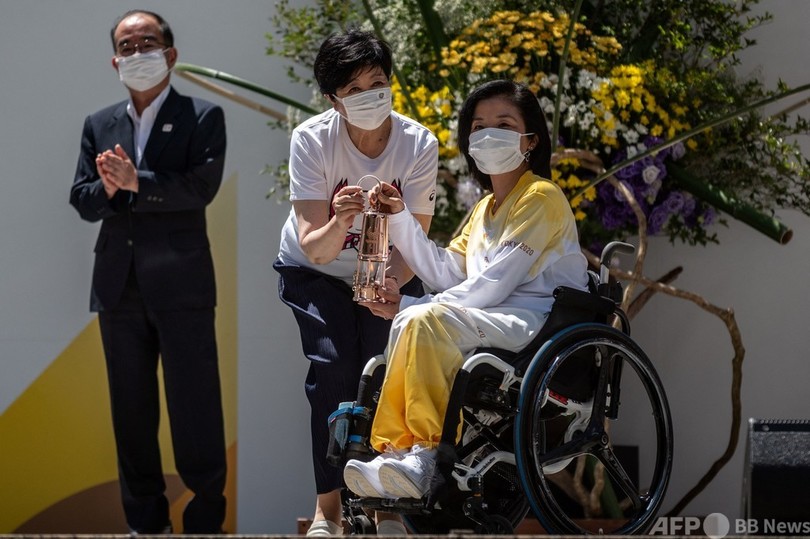 先週には、全国各地で規模を縮小しつつ関連イベントが行われ、パラリンピック聖火が受け渡されてきた。聖火は最終的に、菅義偉(Yoshihide Suga)首相らが出席する同日夜の集火式で一つになる。