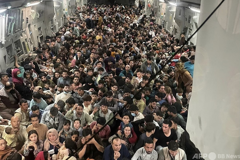 【8月21日 AFP】イスラム主義組織タリバン(Taliban)に制圧されたアフガニスタンからの退避者でひしめき合う機内の写真が話題を呼んだ米軍輸送機について、米国防総省は20日、乗客数は同型機で過去最多となる823人だったと発表した。