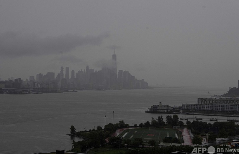 アンリはニューヨーク市から数キロ離れた地点を通過し、21日夜から22日にかけて激しい雨が降り、強い風が吹いた。(c)AFP