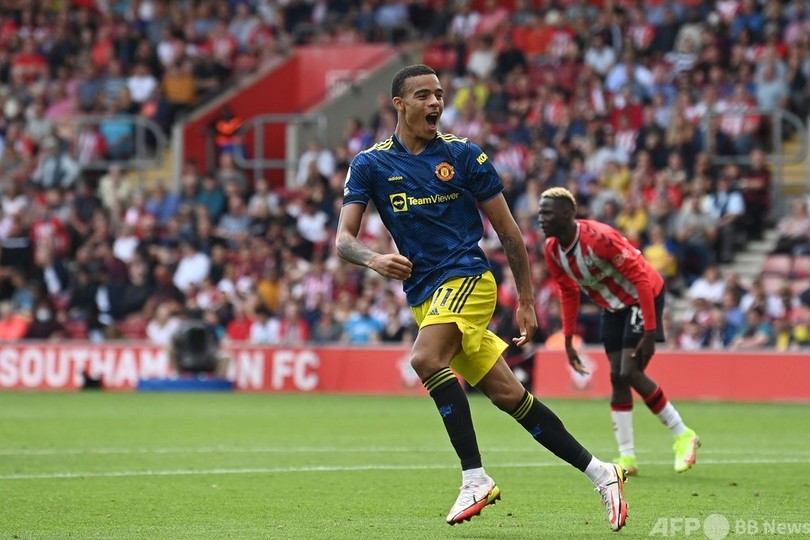 前節リーズ・ユナイテッド(Leeds United)に5-1で大勝していたユナイテッドだったが、セント・メリーズ(St Mary's Stadium)でフレッジ(Fred)がオウンゴールを献上して追いかける展開に。それでもメイソン・グリーンウッド(Mason Greenwood)のゴールで追いついたユナイテッドは、失望の中で敵地を後にしたが、プレミアリーグのアウェー戦無敗記録を27試合に伸ばしてアーセナルに並んだ。(c)AFP