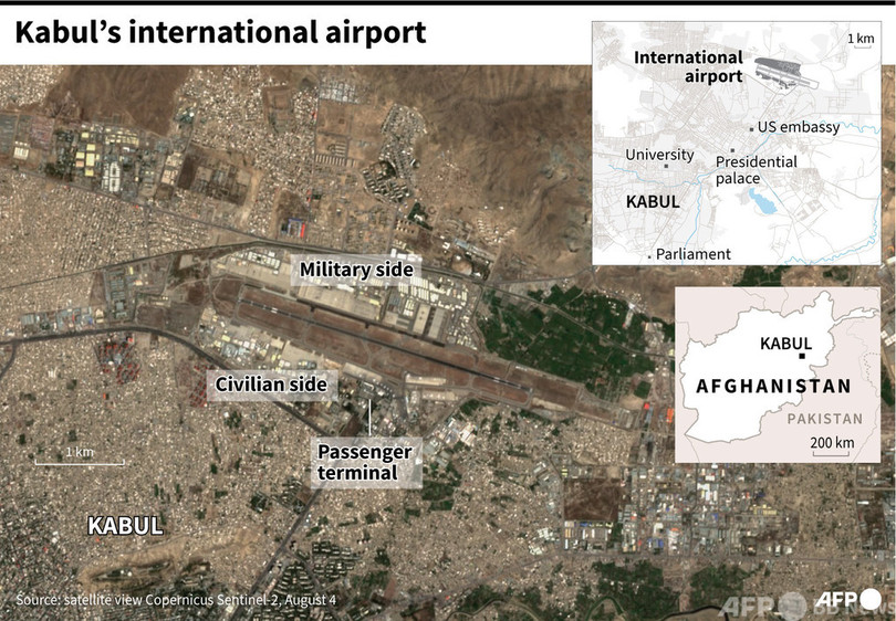 米軍による退避作戦が続く中、空港周辺には国外脱出を希望する数万人の市民が集まり、混乱が広がっている。